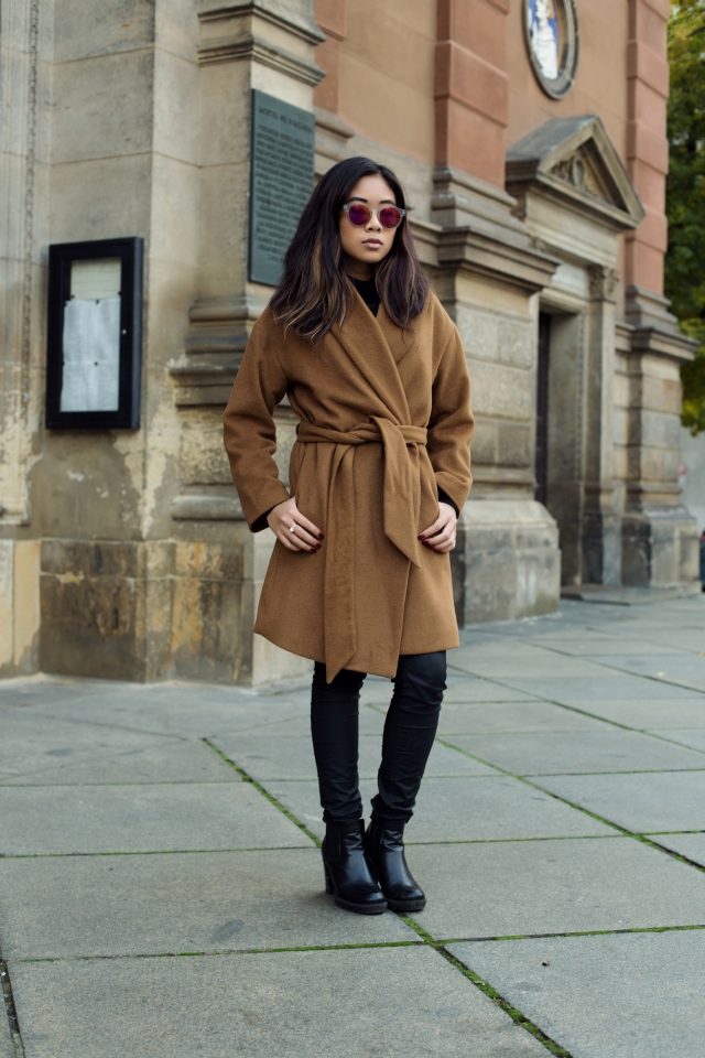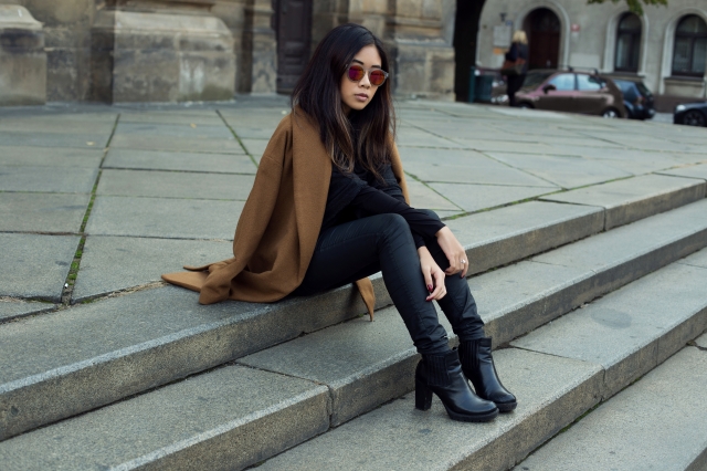 turtleneck, bag: Lindex / coat, pants: H&M / sweater: Candy for Richmen / sunglasses: KOMONO / shoes: casnaboty.cz